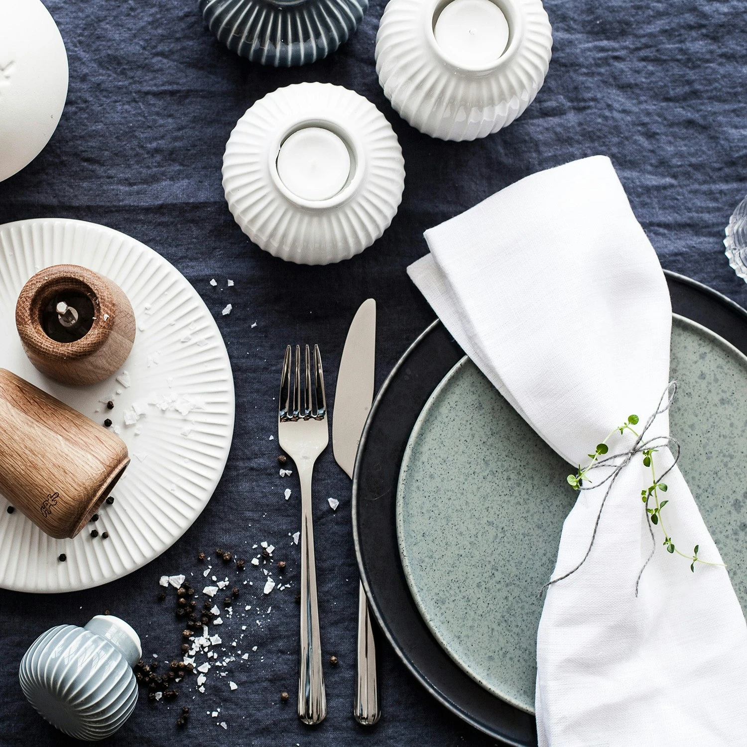 Hammershøi Spice Mill from Kähler. Spice your table with this classic spice mill from the Hammershøi series, where ceramics and wood meet in an exciting mix. The ribbed pattern on the top not only gives a timeless and exclusive feel, it also provides a good grip. Combine the different colors to see a difference on your salt and pepper mill. Designed by Hans Christian Bauer.